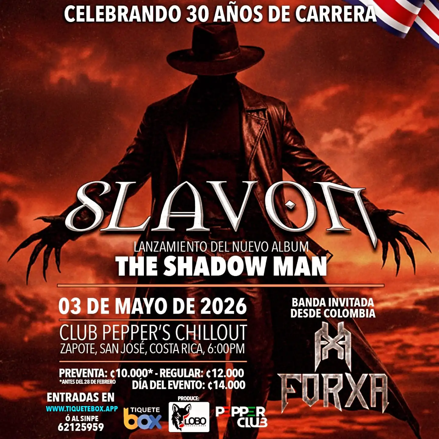 Como parte de esta celebración, Slavon presentará oficialmente su nuevo álbum “The Shadow Man” el próximo 3 de mayo de 2026 en Club Pepper’s Chillout, en Zapote, San José. El evento contará además con la participación de la banda colombiana Forxa como invitada especial.